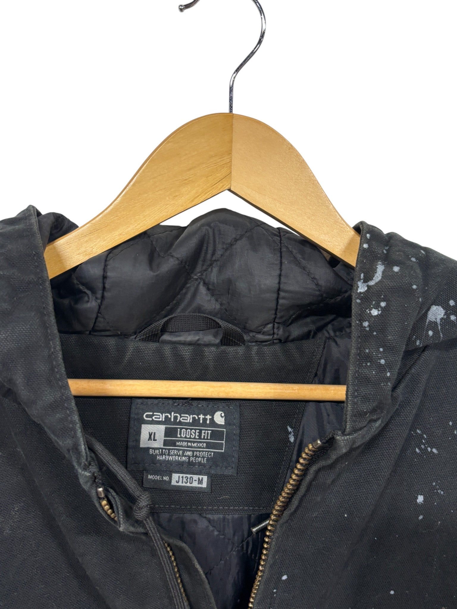Carhartt Black J130 Distressed Zip Up Hooded Work Jacket Size XL
