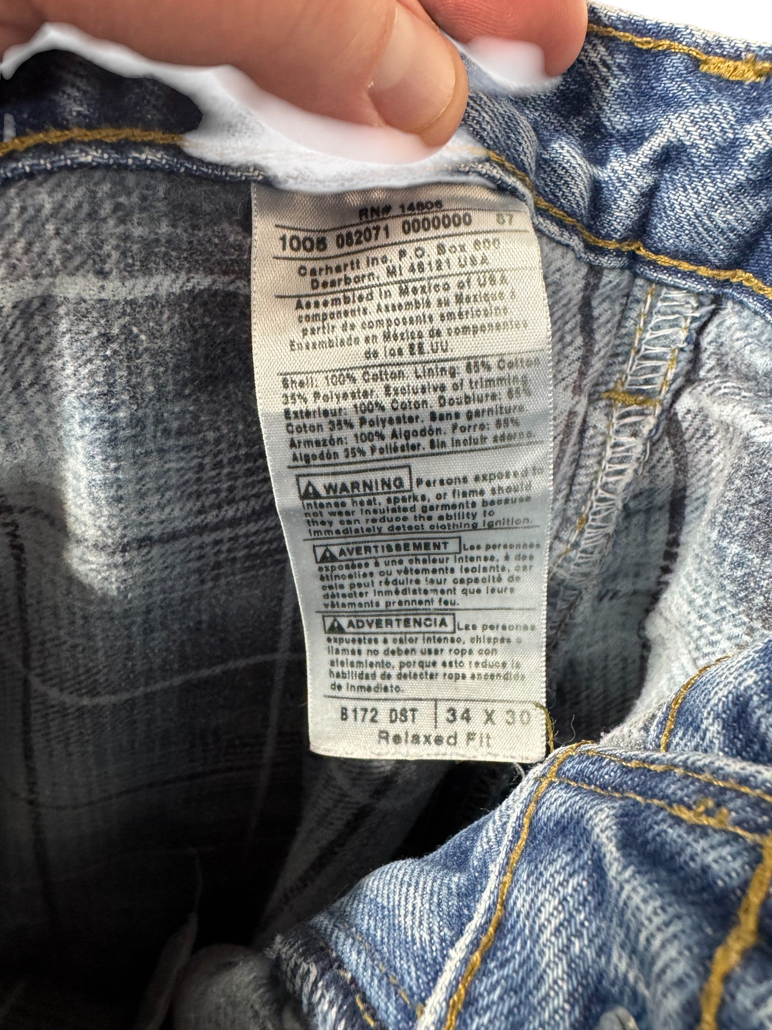 Carhartt Flannel Lined Relaxed Fit Denim Jeans Size 33x29