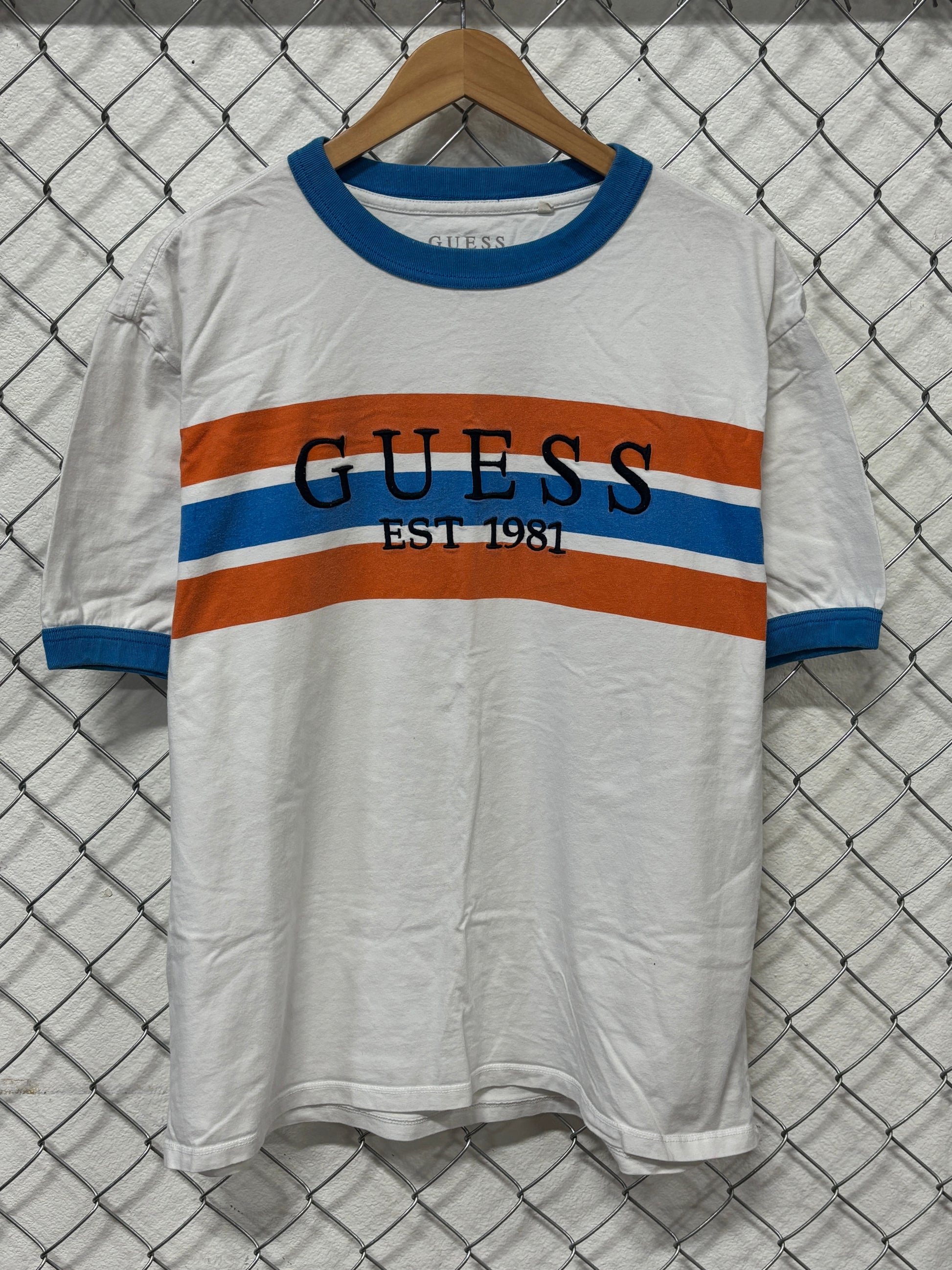 Guess Striped Ringer Graphic Tee Size Large