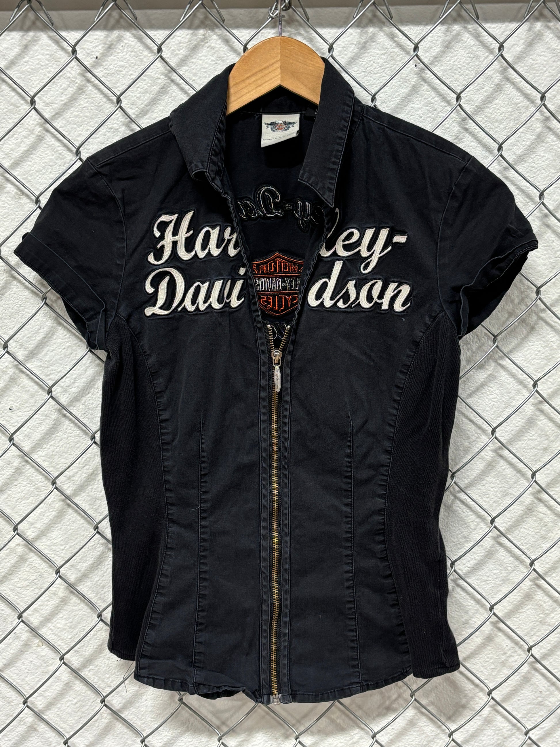 Harley Davidson Women's Black Full Zip Biker Shirt Size XS