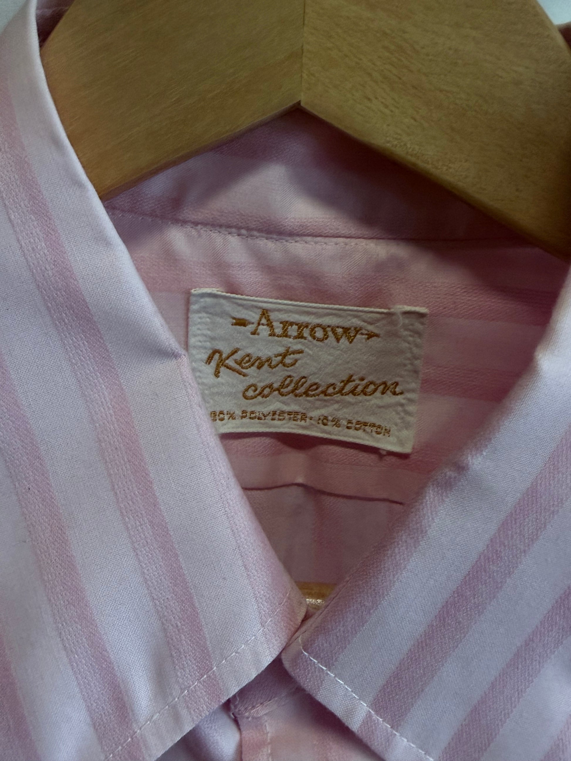 Vintage 70's Arrow Kent Collection Pink Striped Button Up Shirt Size Large