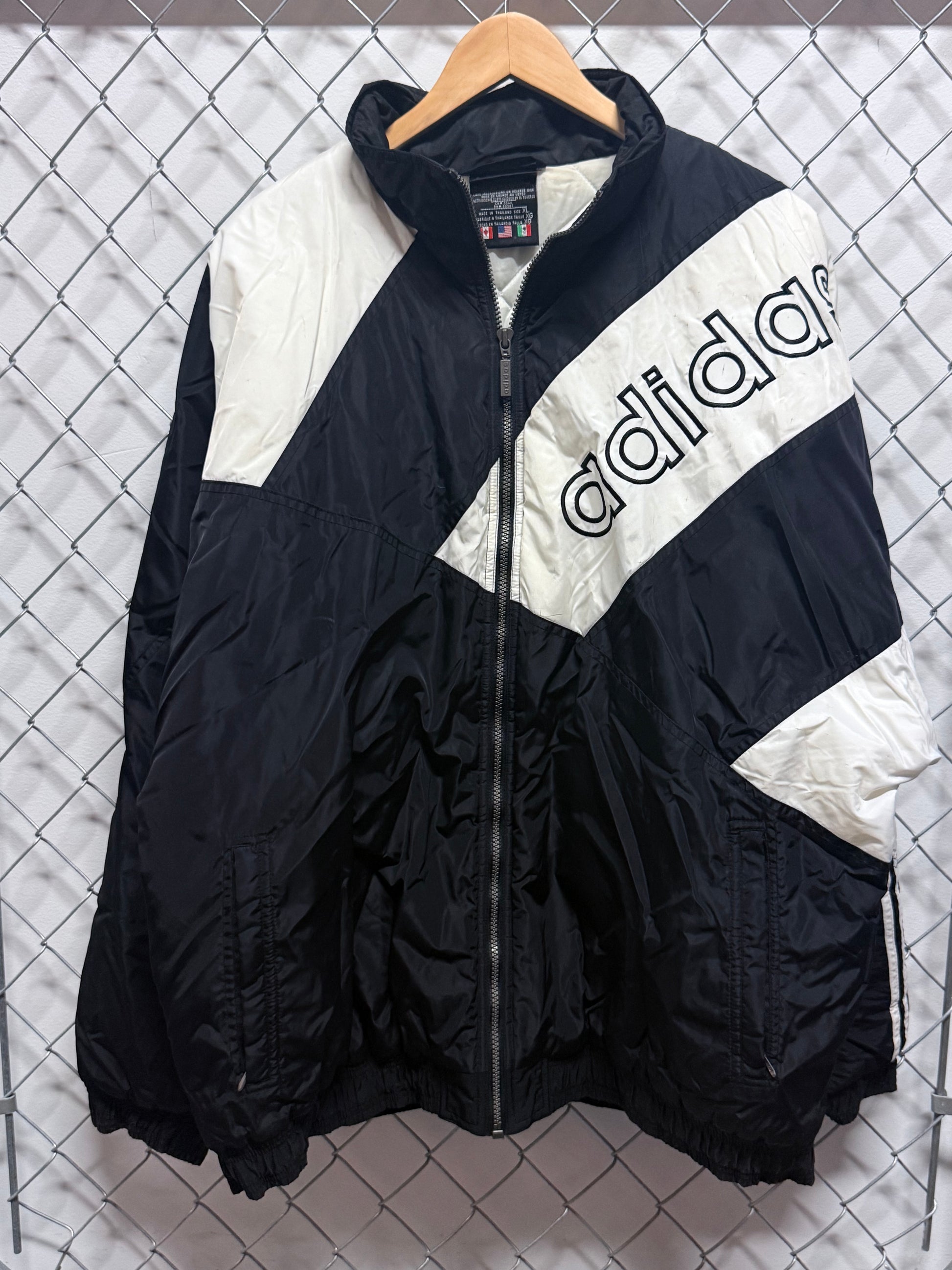 Vintage 90's Adidas Three Stripe Black White Windbreaker Jacket Size XL