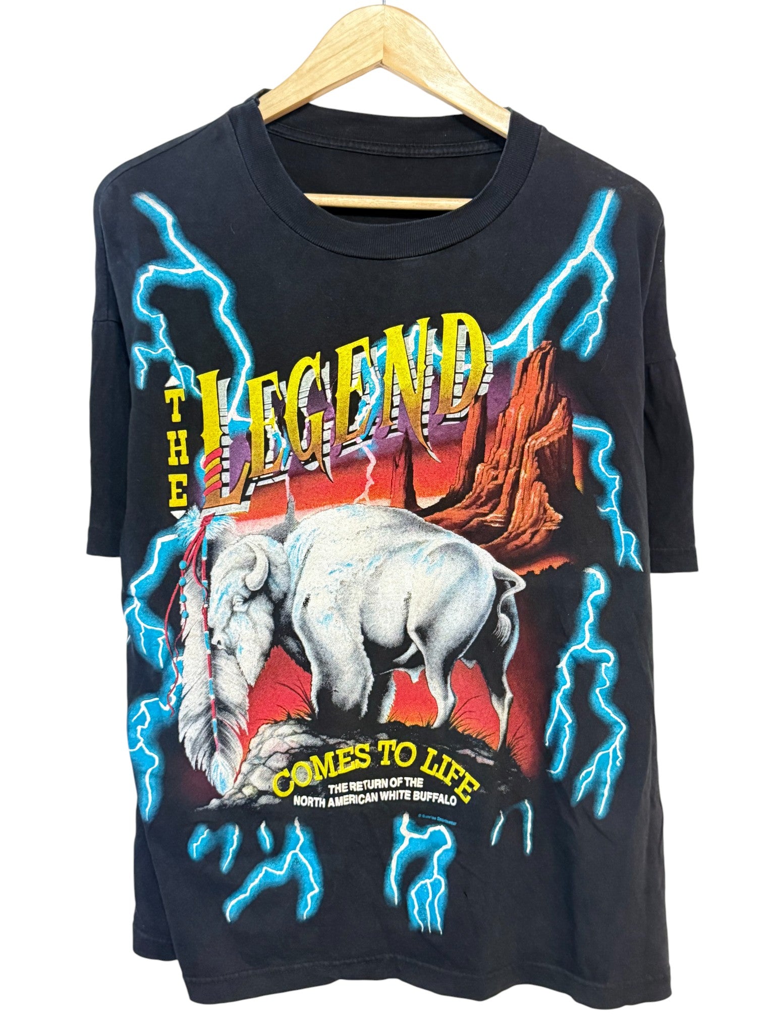 Vintage 90's American Thunder Legend White Buffalo AOP Tee Size XL