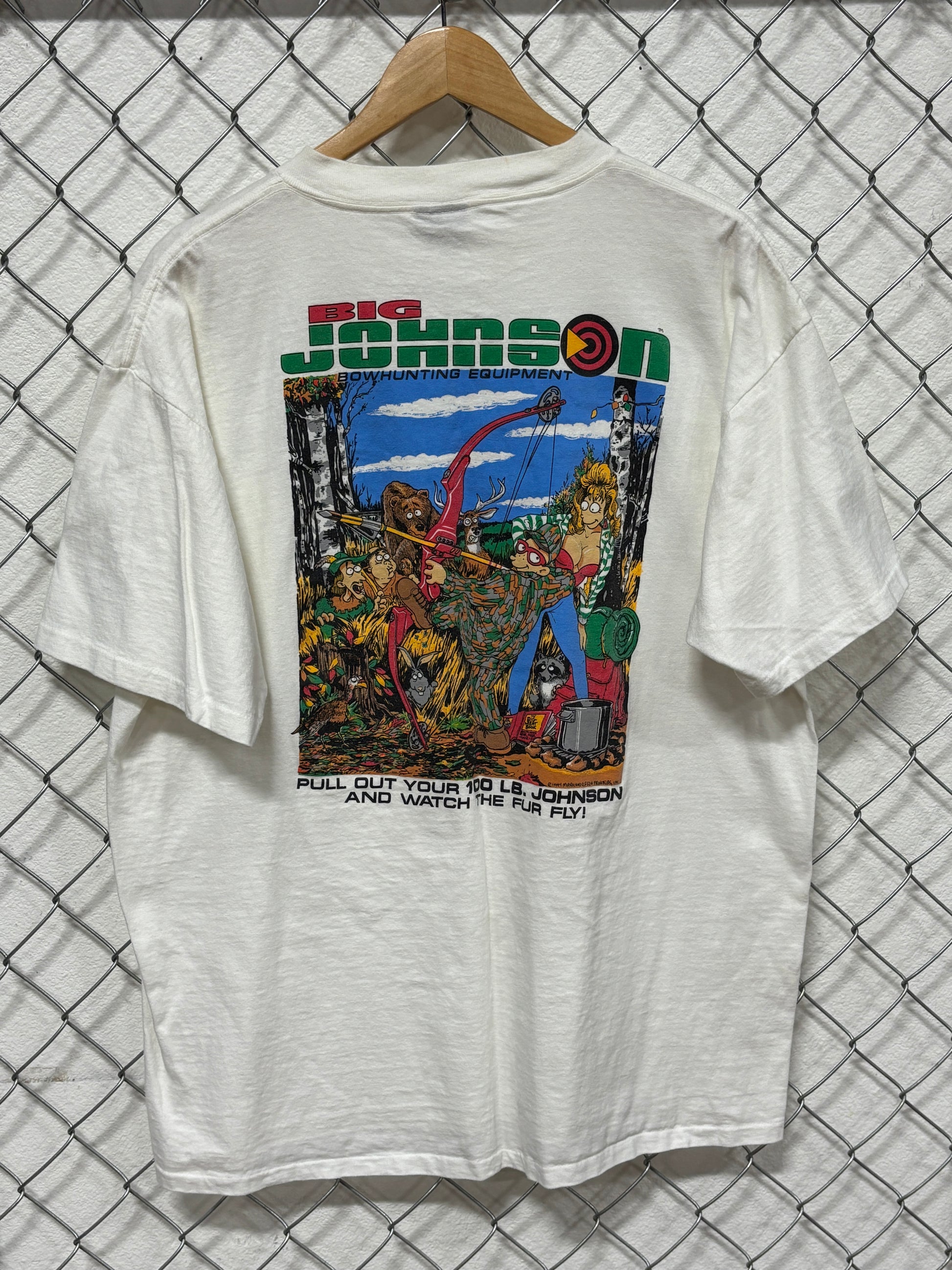 Vintage 90's Big Johnson Bowhunting Equipment Funny Graphic Tee Size XL