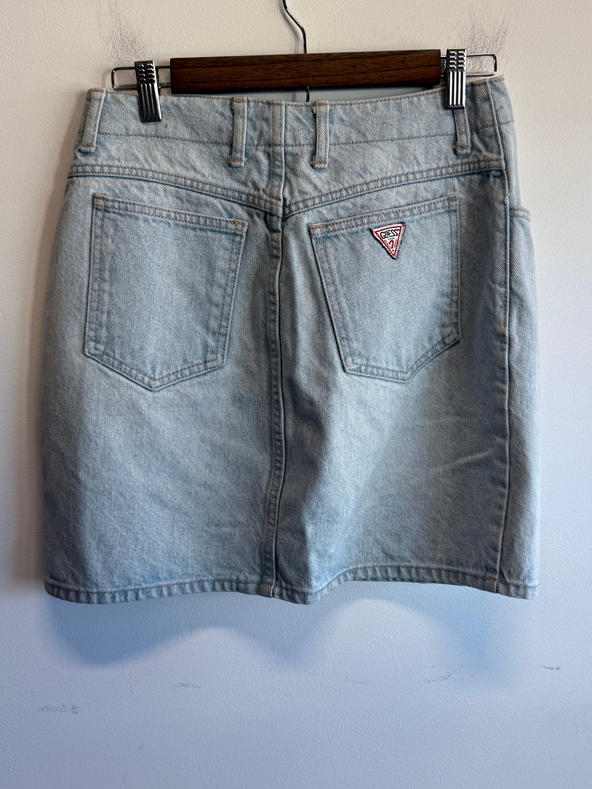 Vintage 90's GUESS Women's Light Wash Denim Mini Skirt Size 27