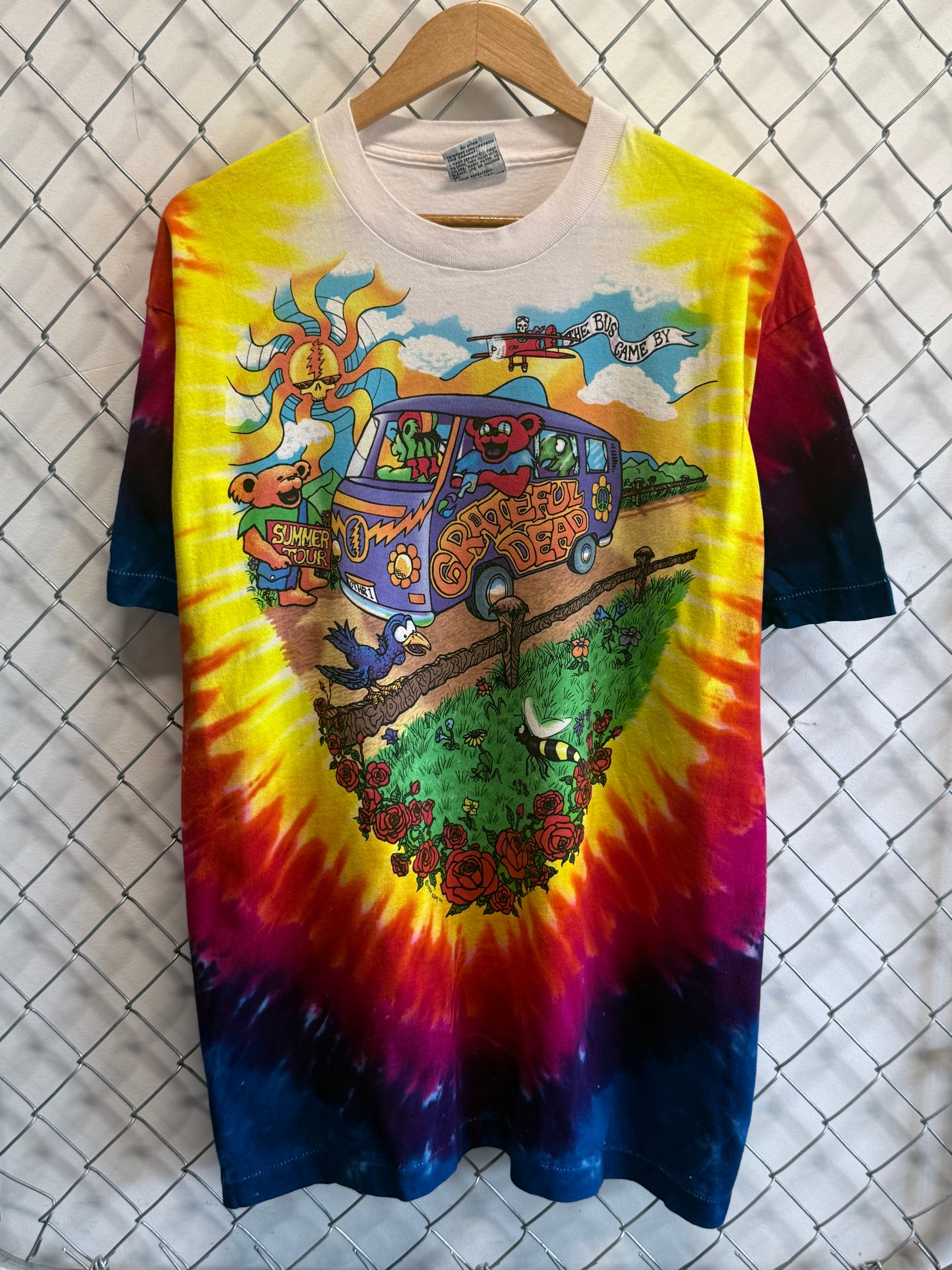Vintage 90's Liquid Blue Grateful Dead Bus Tie Dye Graphic Band Tee Size XL