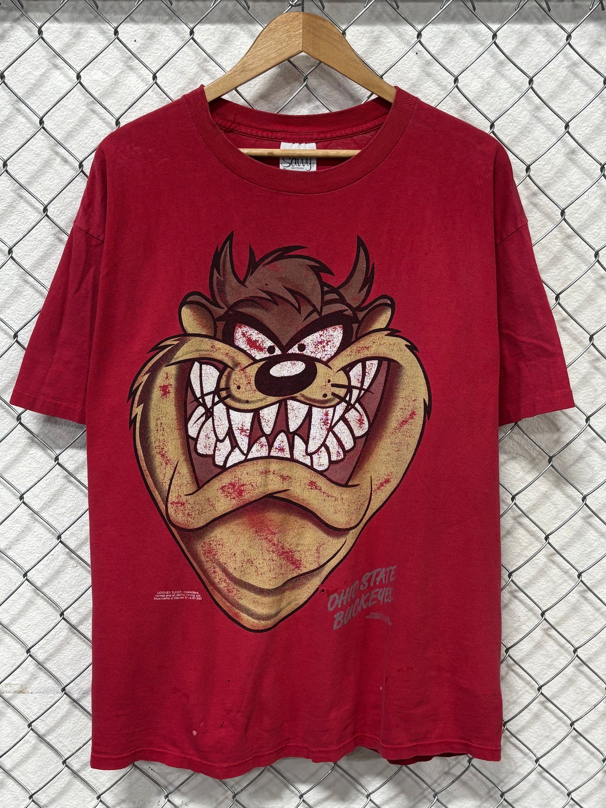Vintage 90's Ohio State Buckeyes Looney Tunes Taz Cartoon Tee Size XL