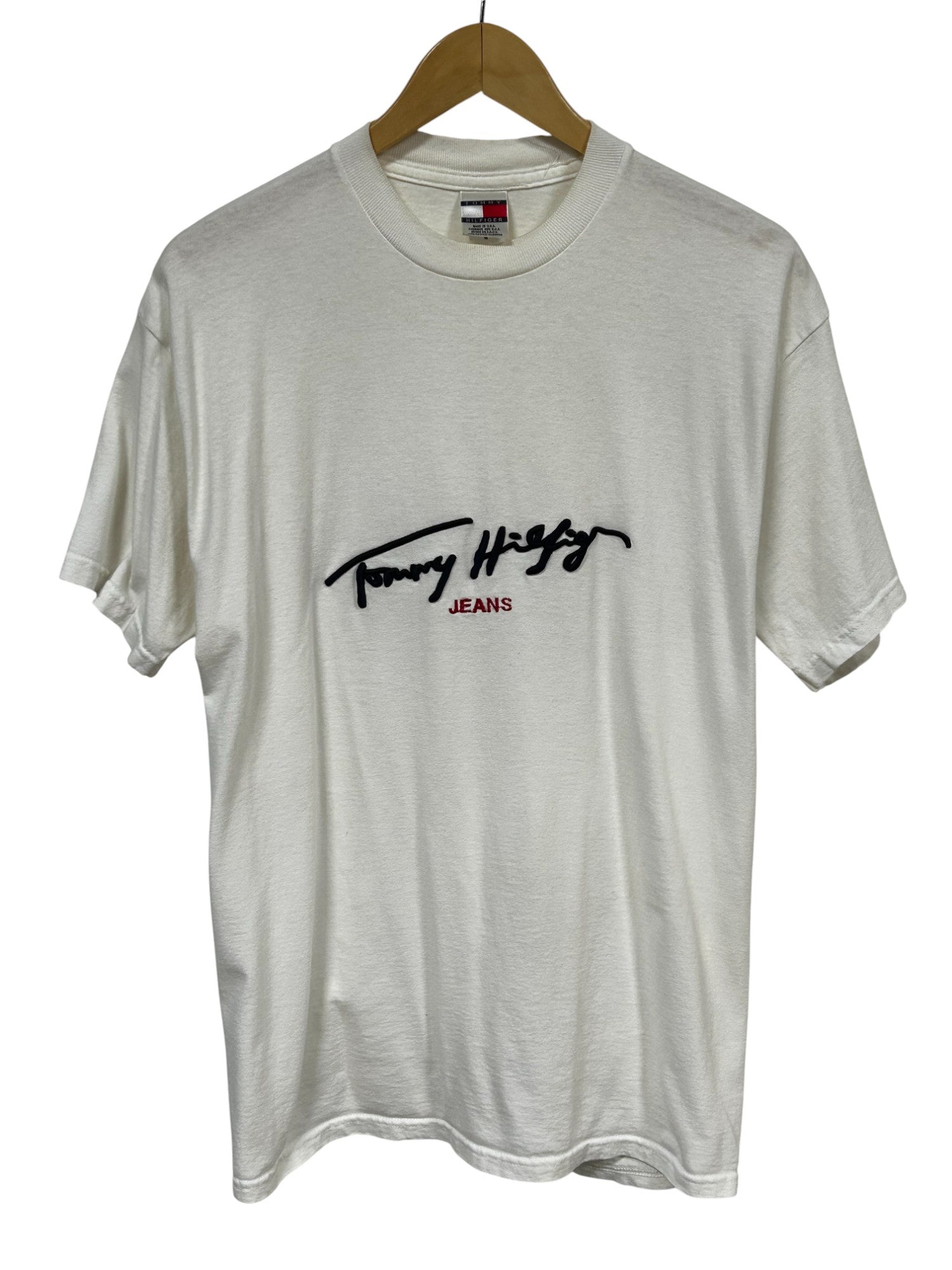 Vintage 90's Tommy Hilfiger Jeans Script Logo Graphic Tee Size Medium