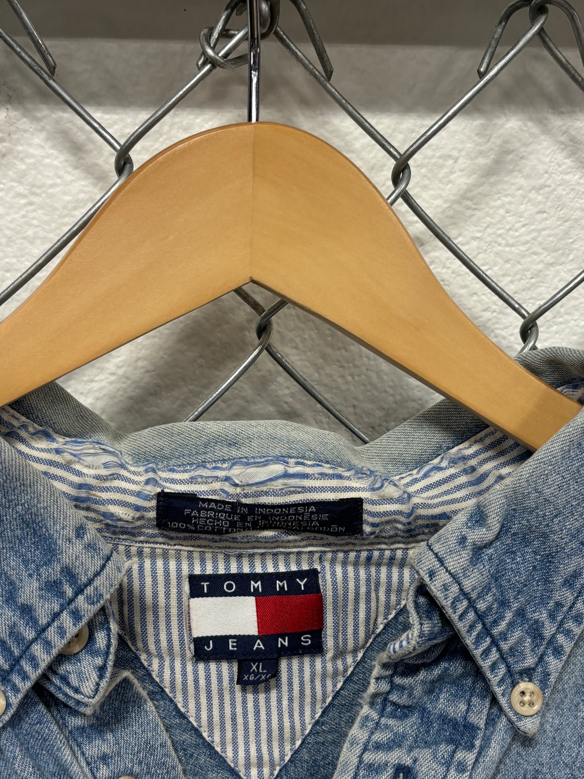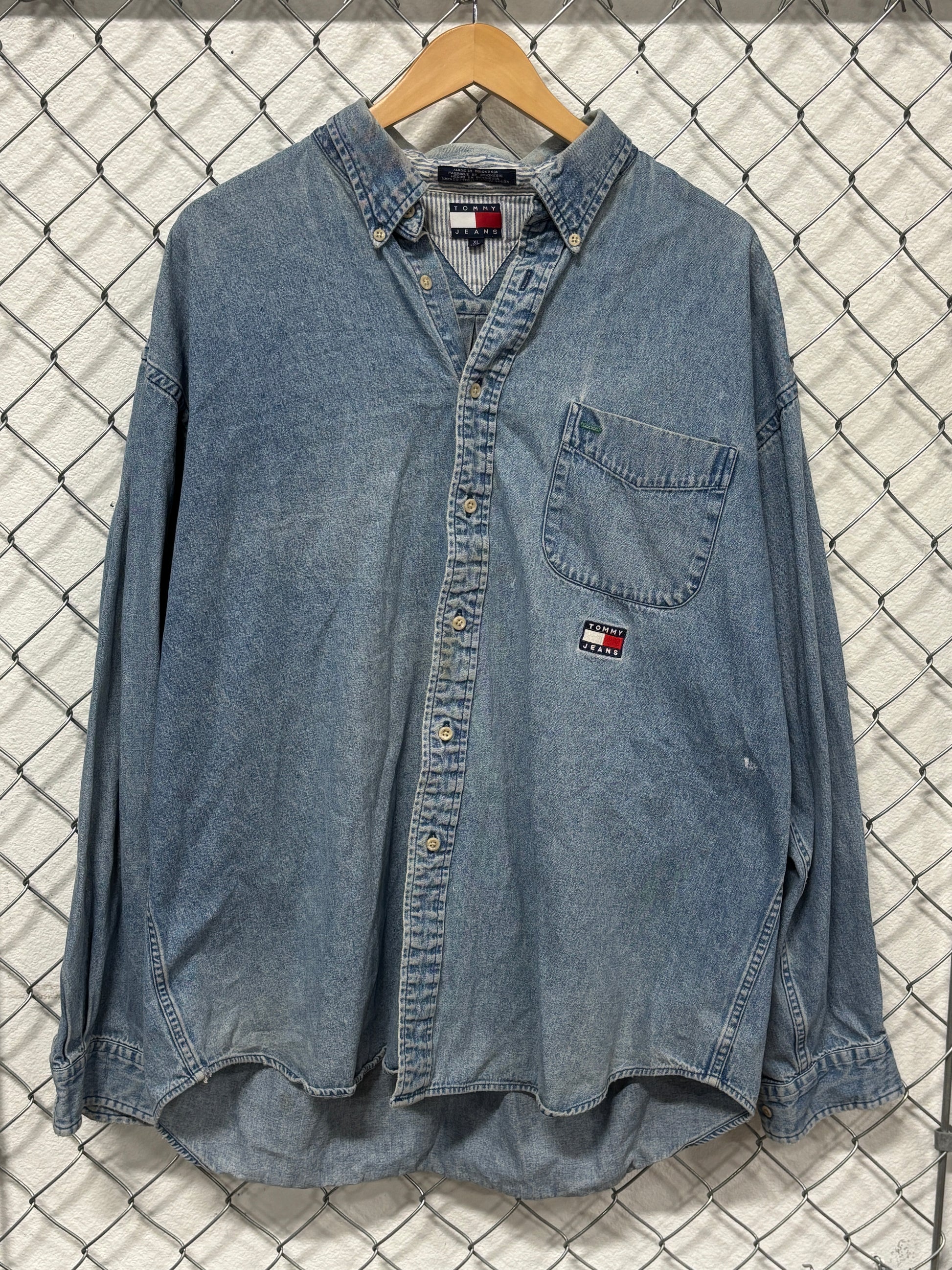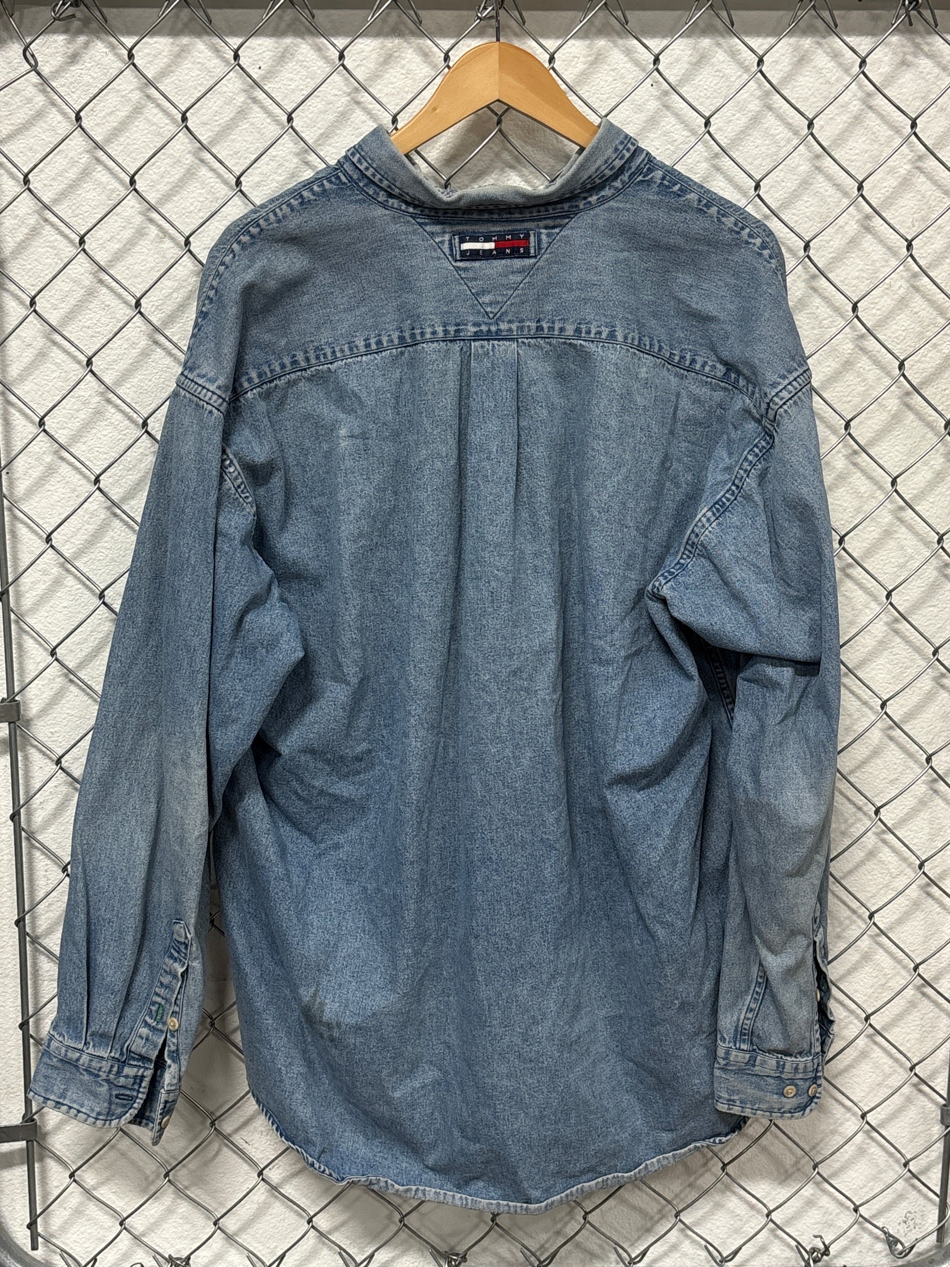 Vintage 90's Tommy Jeans Denim Blue Button Up Shirt Size XL