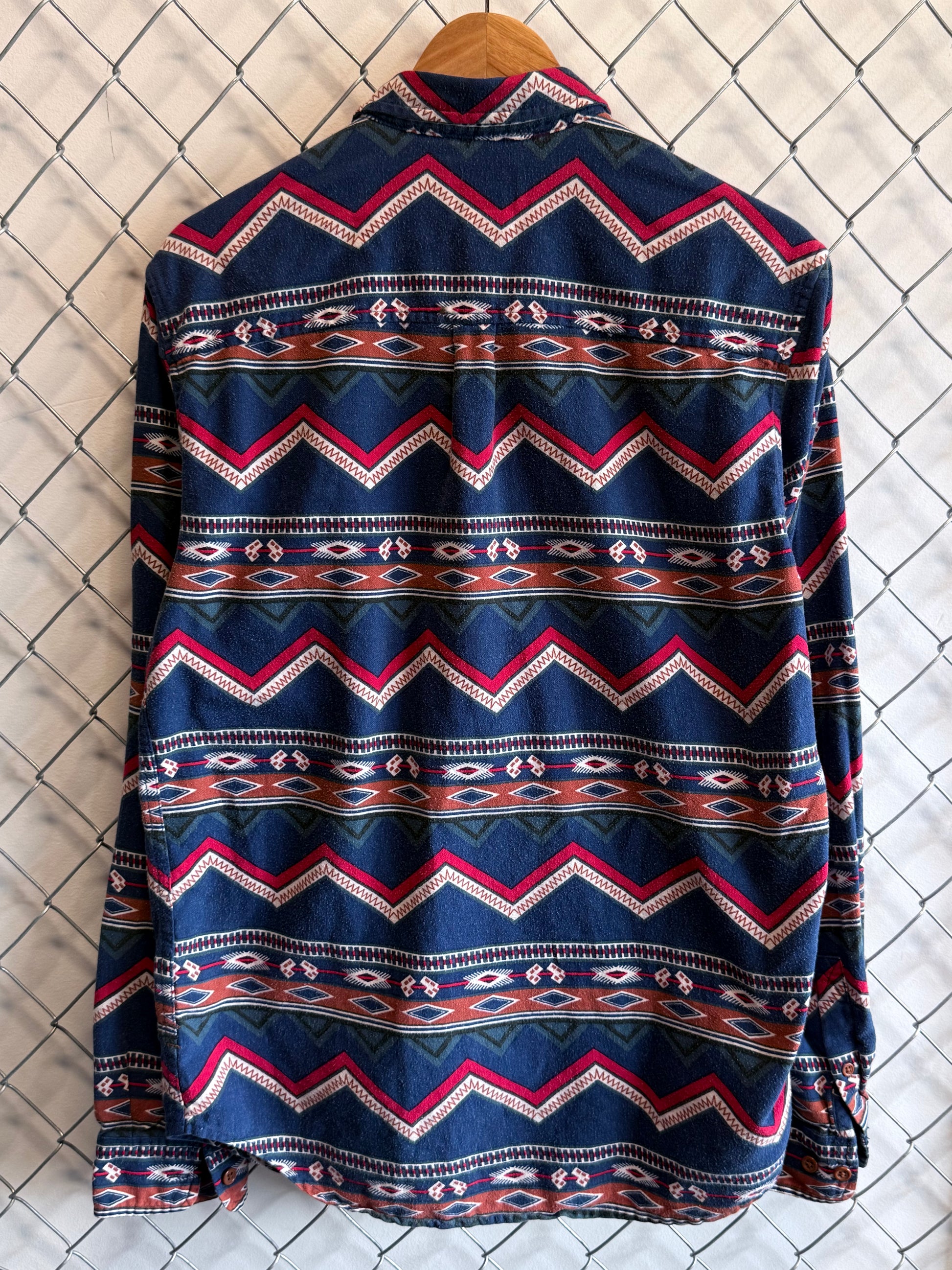 Vintage Aztec Print Button Up Western Style Shirt Size Large