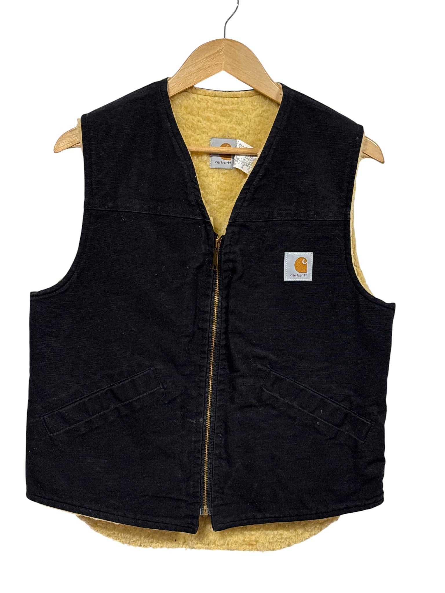 Vintage Carhartt Made in USA Black Sherpa Lined Vest Size Medium