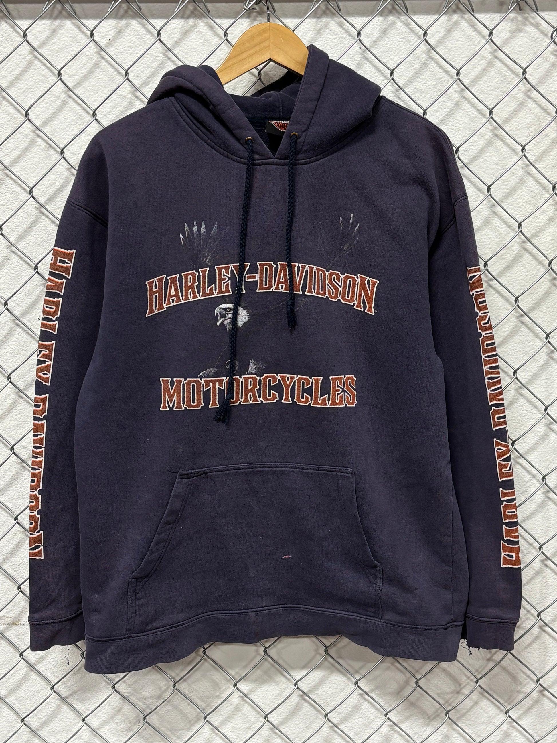 Vintage Harley Davidson Bald Eagle Biker Hoodie Size Large