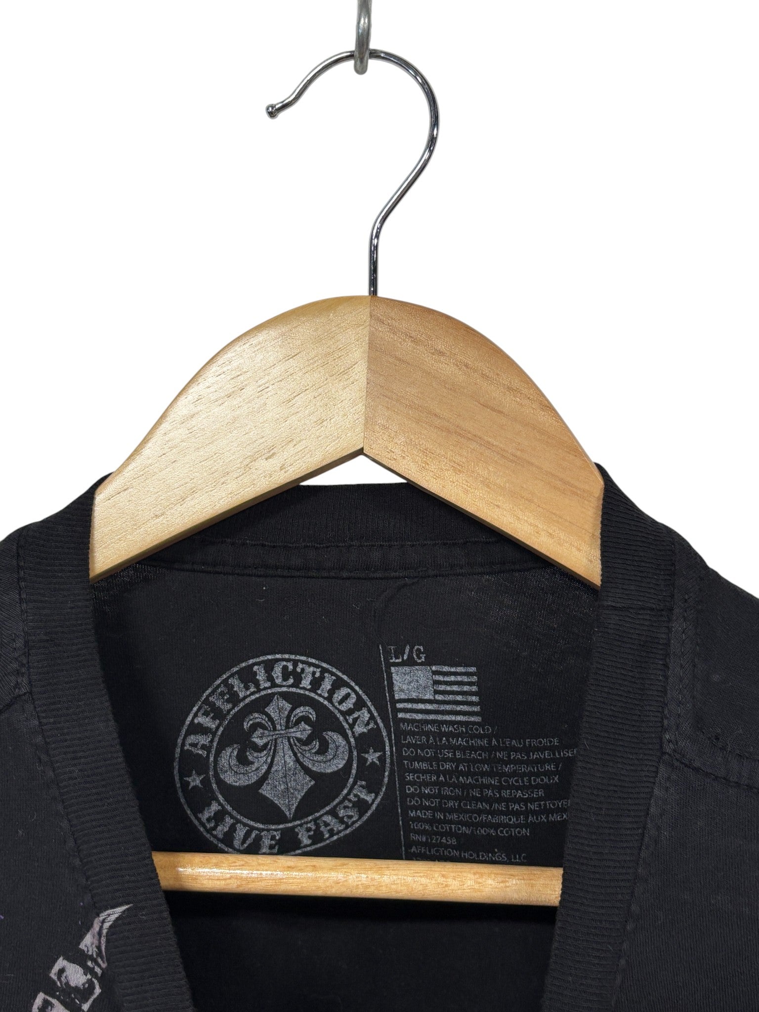 Vintage Y2K Affliction Black Purple Skull Big Print Graphic Tee Size Large