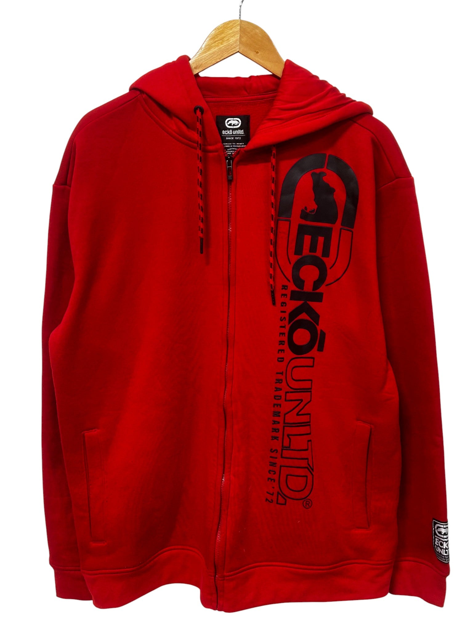 Vintage Y2K Ecko Unlimited Classic Logo Red Zip Up Hoodie Size XL