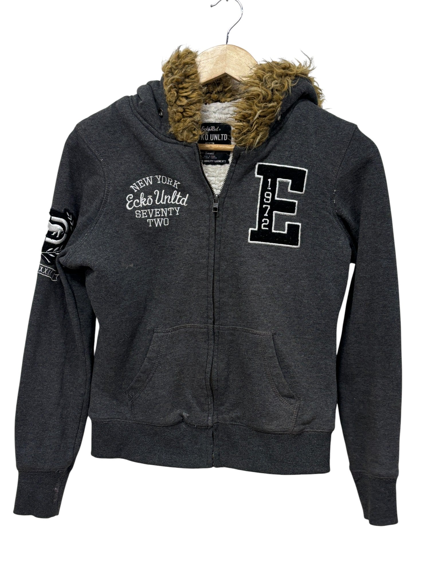 Vintage Y2K Women's Ecko Unlimited Fur Lined Hoodie Size Small